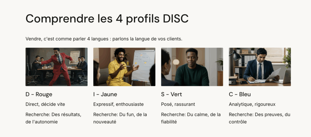 👉 Le DISC devient ton GPS pour choisir le bon ton et créer un lien de confiance durable.